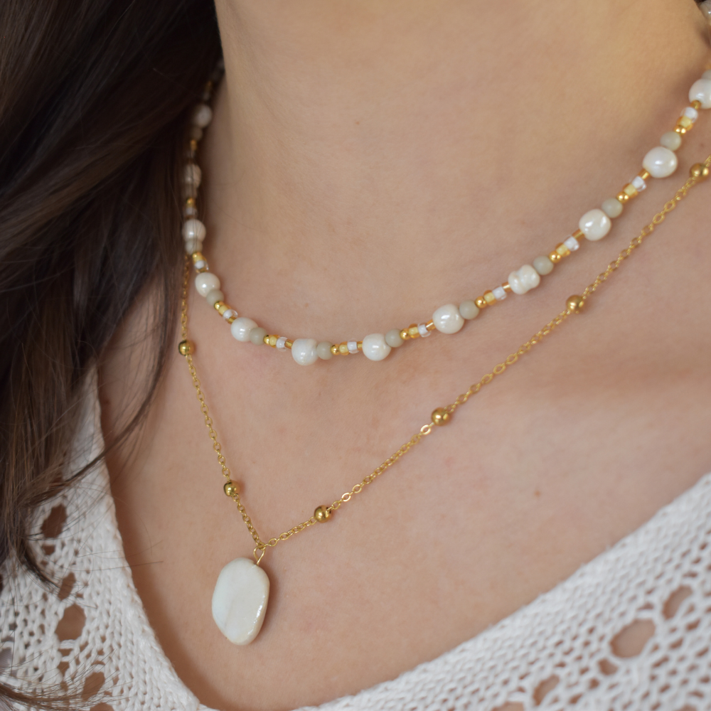 Unsere veganen Keramikperlen werden in mehreren Schritten von Hand gefertigt und überzeugen durch einen natürlichen Schimmer. Sie sind eine zeitgemäße, langlebige Alternative zu Zuchtperlen - frei von Plastik und tierischen Bestandteilen.