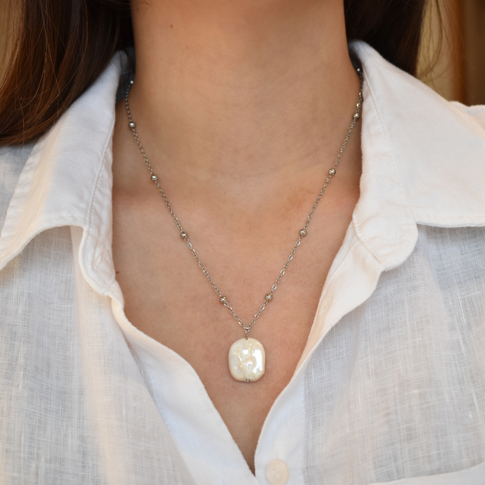 Die Halskette Maréa trägt einen organisch geformten Perlenanhänger mit einer natürlichen und fließenden Form. Da jede Perle individuell von Hand geformt ist, gleicht kein Anhänger dem anderes - jedes Stück ist ein Unikat, das sich einzeln getragen ebenso stimmig einfügt wie im Layering kombiniert.