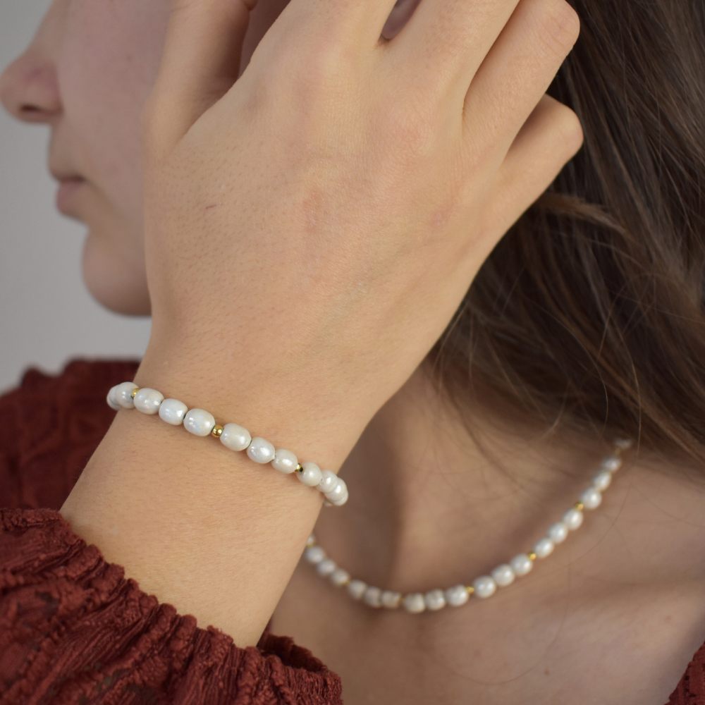 Jede Perle wird von Hand geformt und in mehreren Arbeitsschritten gefertigt. Form und Schimmer variieren dabei jedes Mal - keine Perle gleicht der anderen. Genau diese kleinen Unterschiede machen sie besonders. Unsere Perlen kommen dabei vollständig ohne Muscheln, tierische Bestandteile oder Plastik aus. Sie sind inspiriert von der natürlichen Schönheit klassischer Perlen - nur fairer, bewusster und zeitgemäß.
