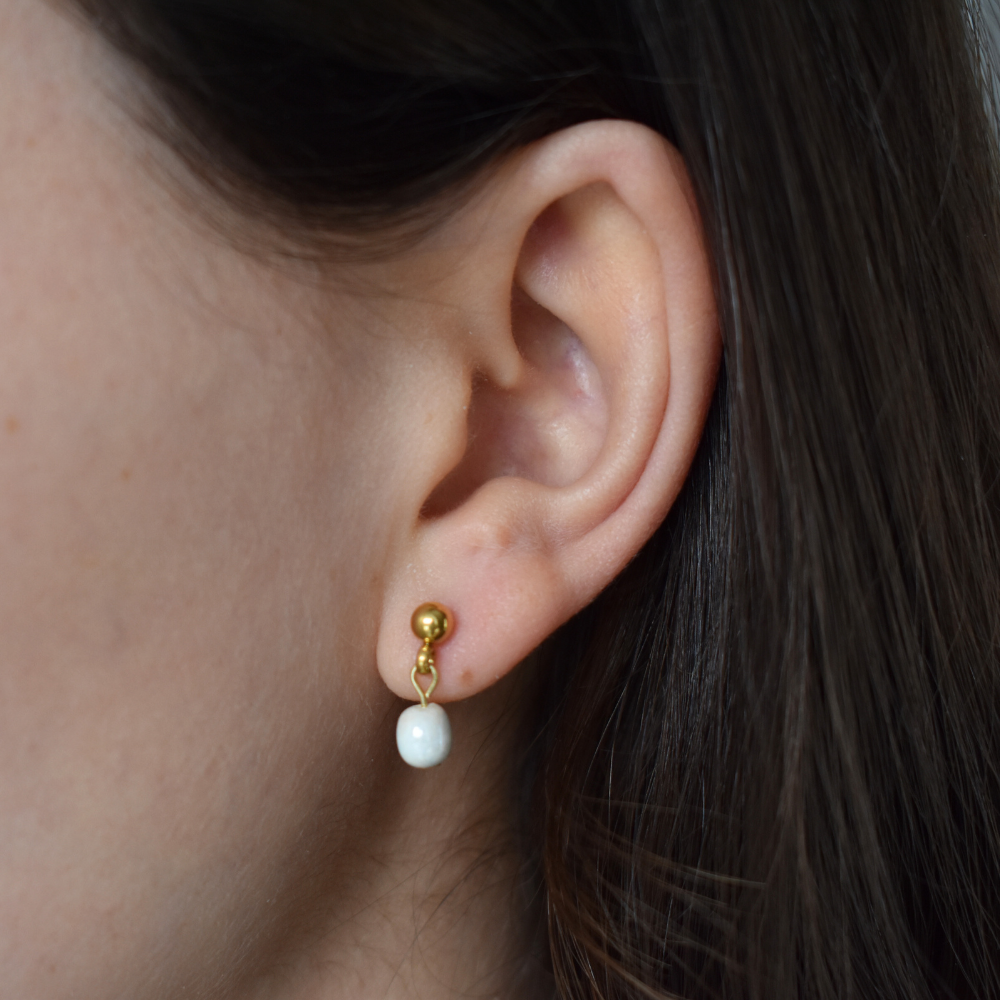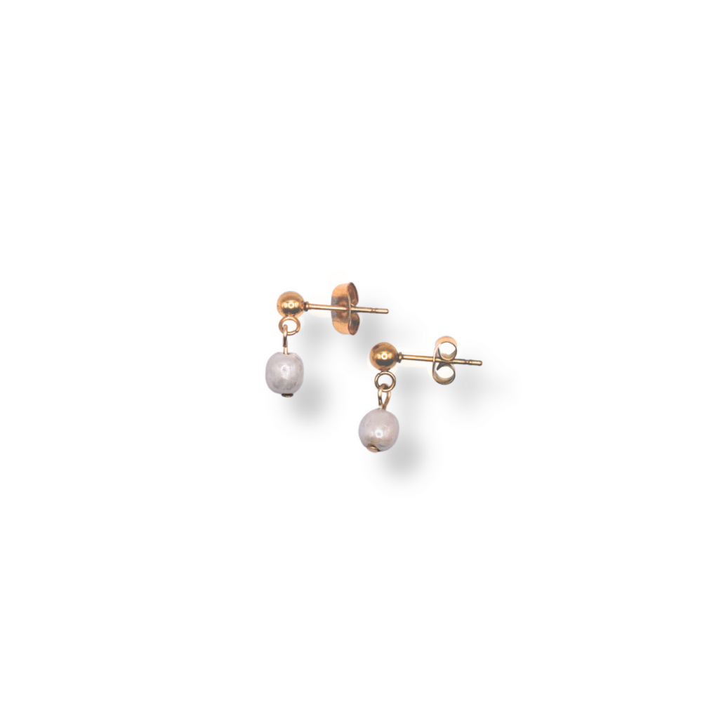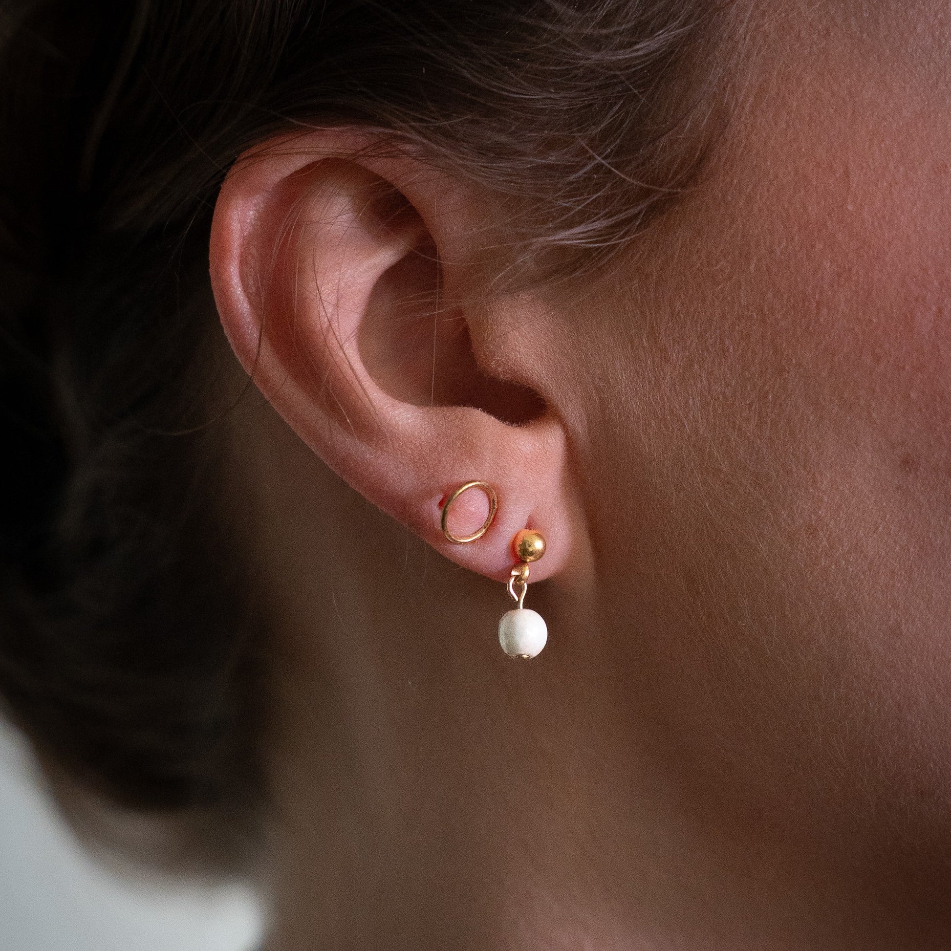 Die Ohrstecker Viona tragen eine feine goldene bzw. silberne Kugel und einen filigranen Perlenanhänger. Sie runden dezente Outfits wunderschön ab und sind daher der optimale Begleiter für deinen Alltag.
