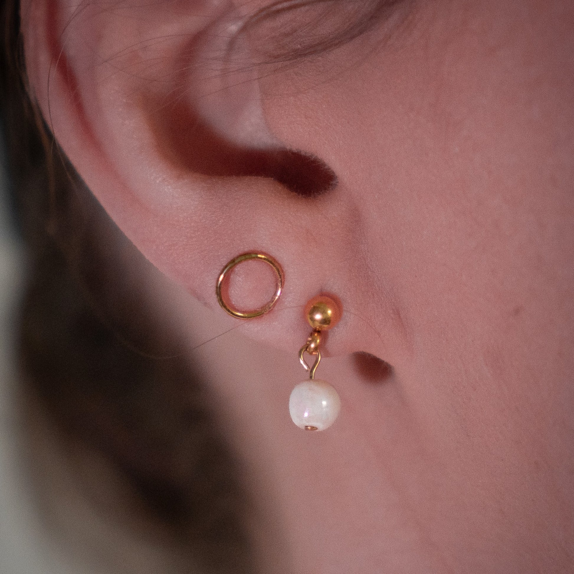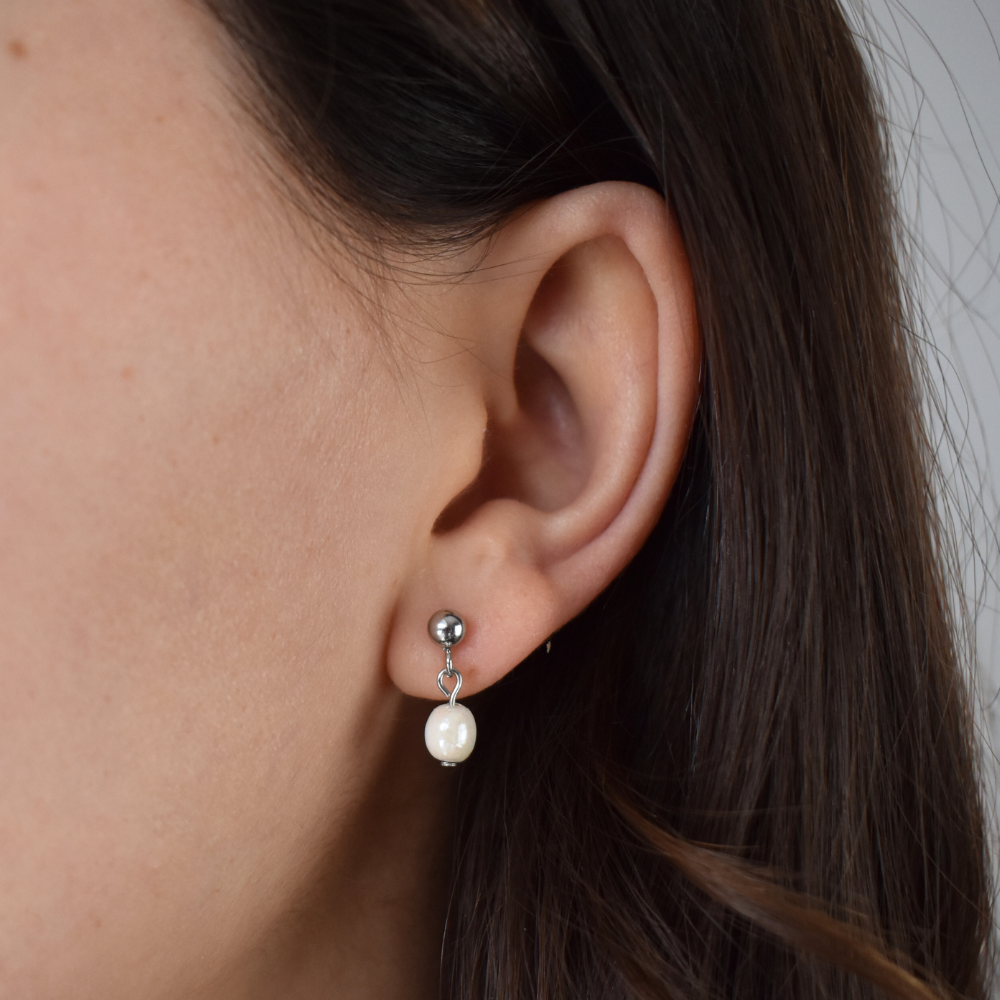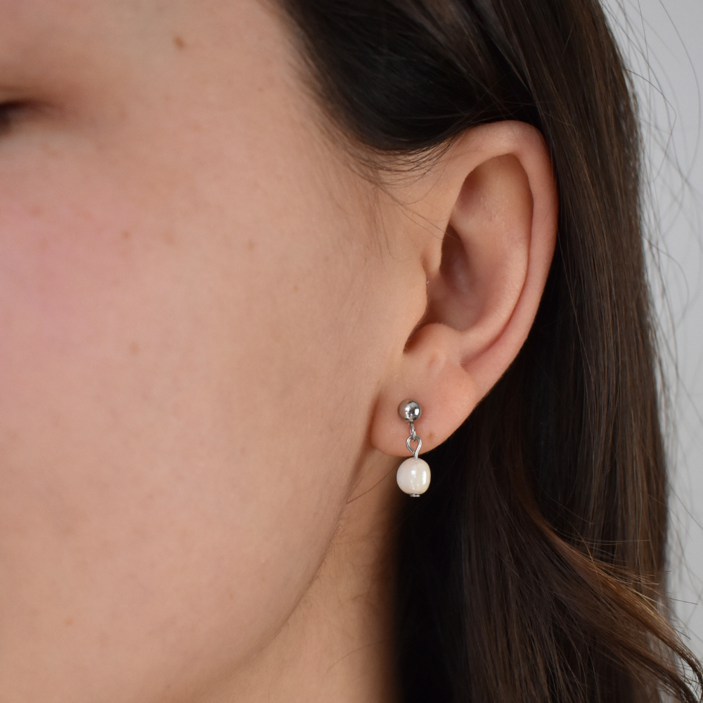 Die Ohrstecker Viona tragen eine feine goldene bzw. silberne Kugel und einen filigranen Perlenanhänger. Sie runden dezente Outfits wunderschön ab und sind daher der optimale Begleiter für deinen Alltag.